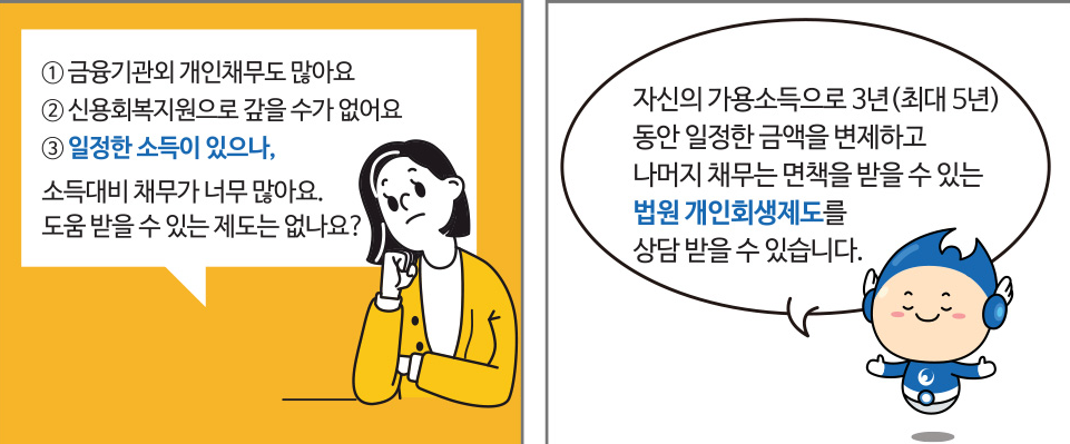 - 무료 지원: 대한법률구조공단, 신용회복위원회