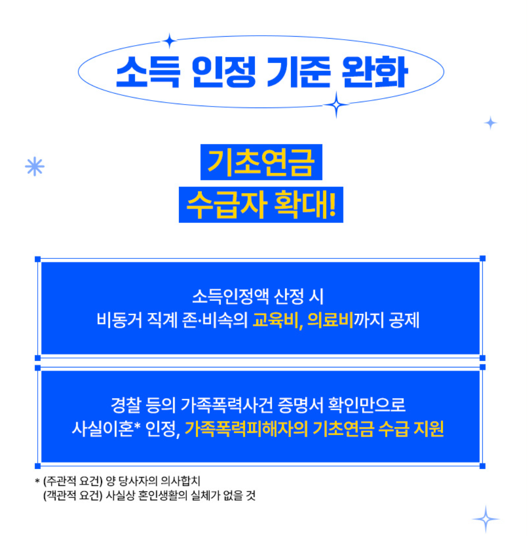 - 선정기준액 인상 (소득기준 완화)