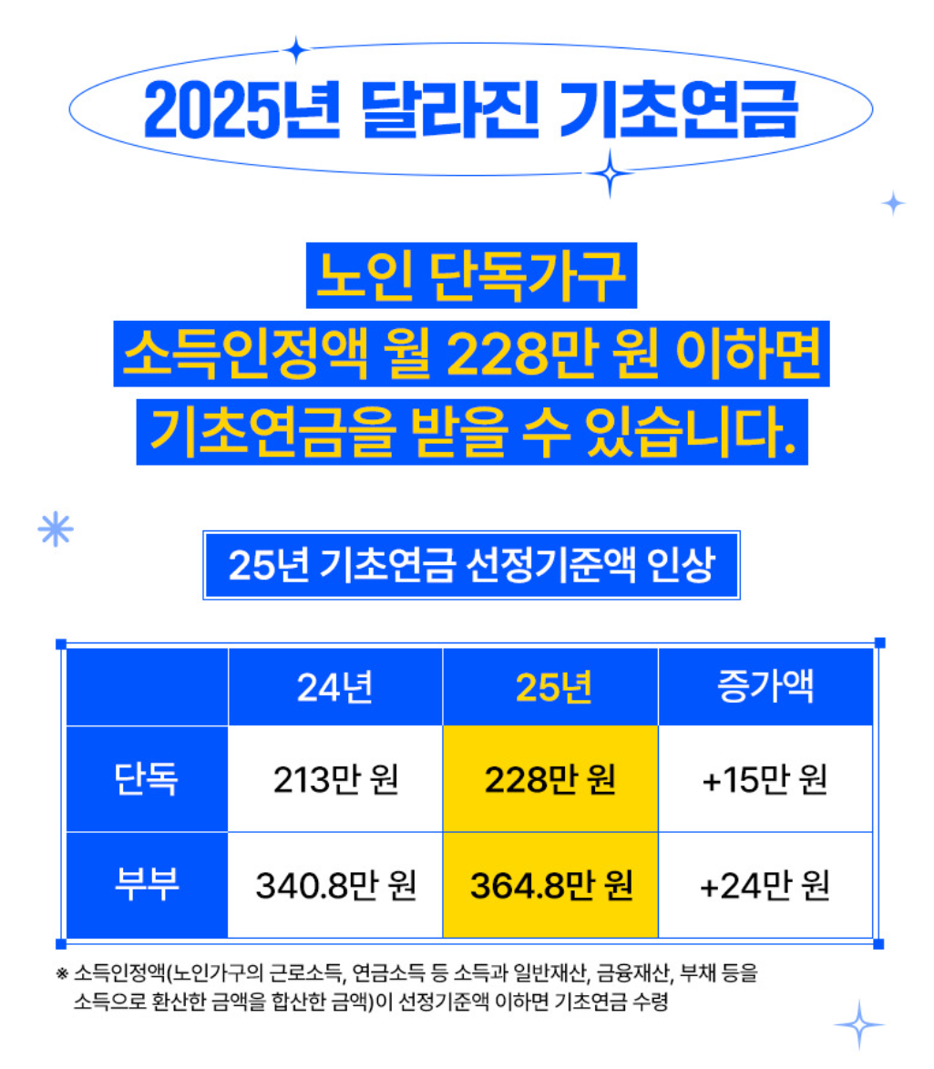 선정기준액이 인상되어 더 많은 어르신들이 수급할 수 있게 되었습니다.