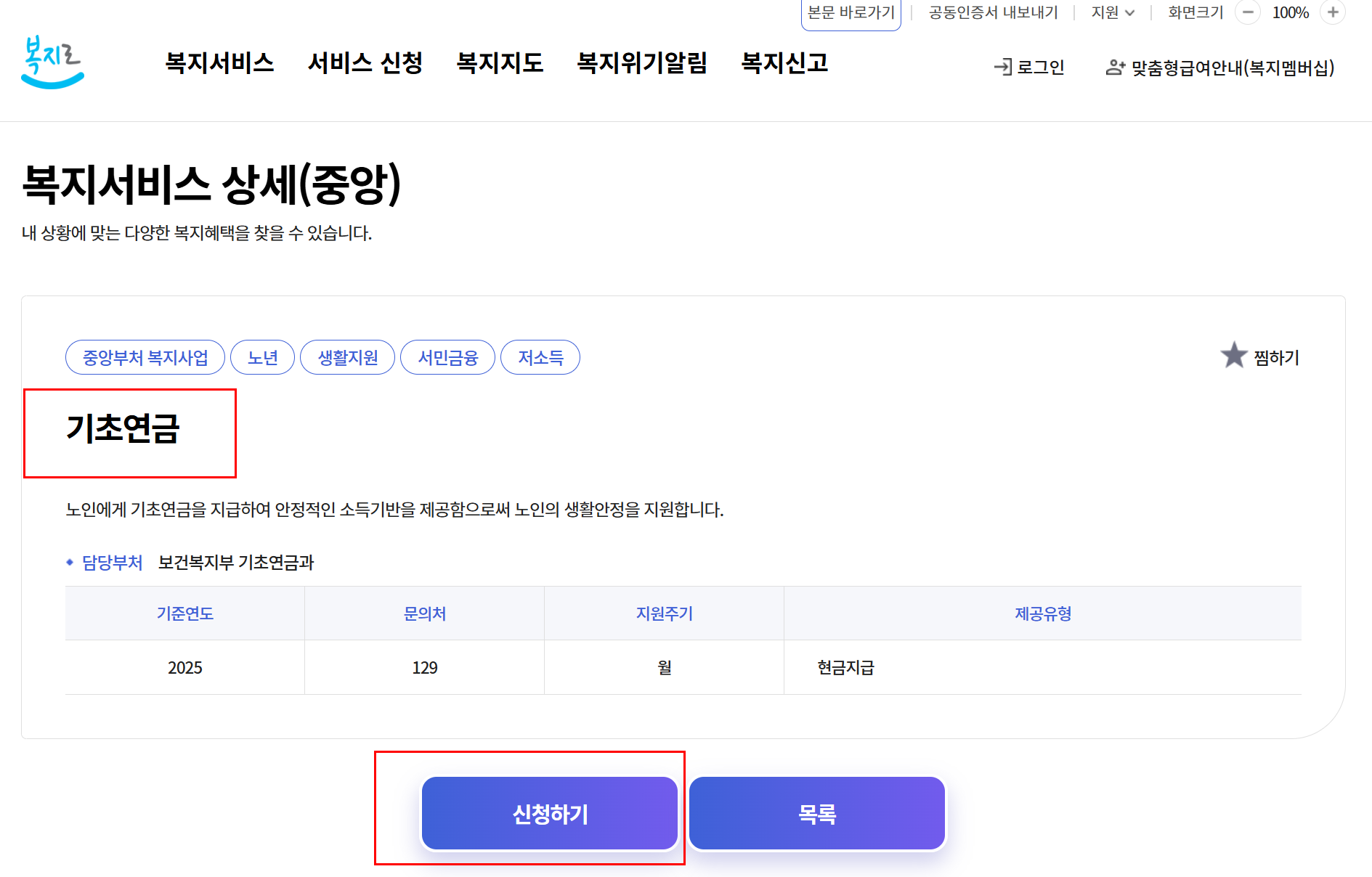 2025년 기초연금 신청 대상자 안내