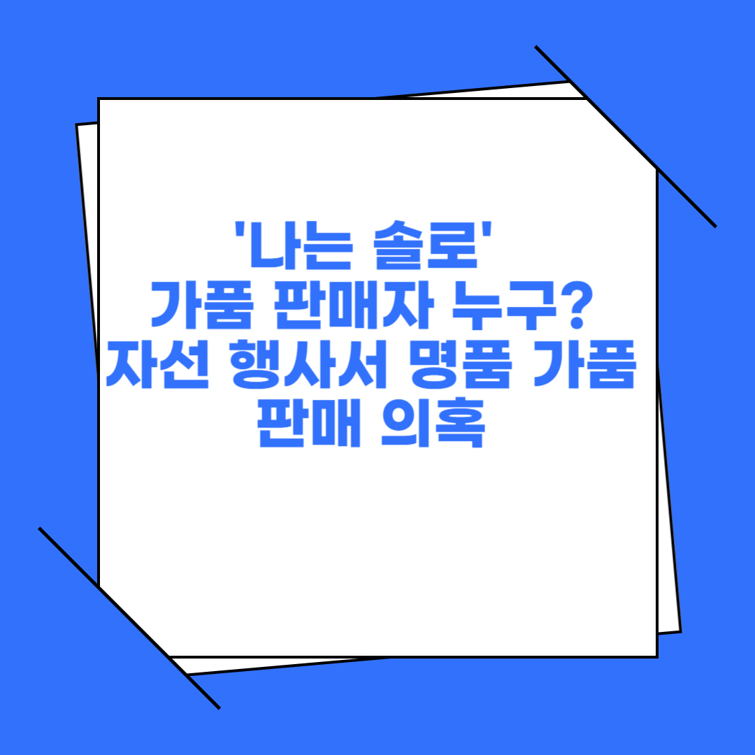 2025년 5월 28일, JTBC '사건반장' 보도에 따르면, 인기 연애 리얼리티 프로그램 '나는 솔로'에 출연한 여성 출연자 A씨가 자선 경매 행사에서 명품 가품을 진품으로 속여 판매했다는 의혹이 제기되었습니다.
