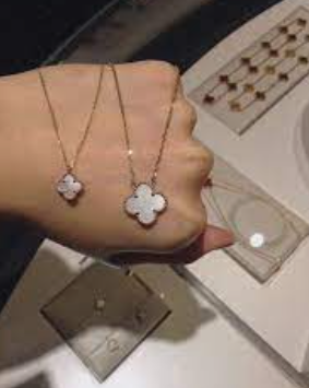 해당 목걸이는 네잎클로버 모티브로 유명한 알함브라 컬렉션 중 하나로, 우아함과 행운을 상징하는 디자인으로 많은 사랑을 받고 있습니다.