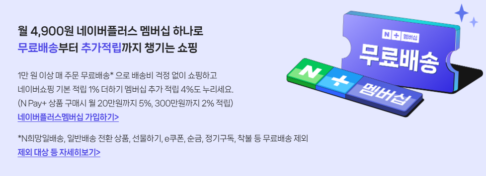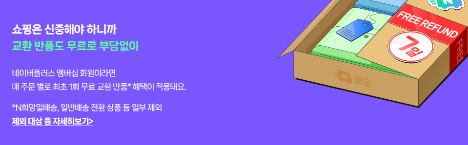 네이버배송 태그 상품은 1만 원 이상 구매 시 무료배송 + 무료 교환/반품 1회 가능