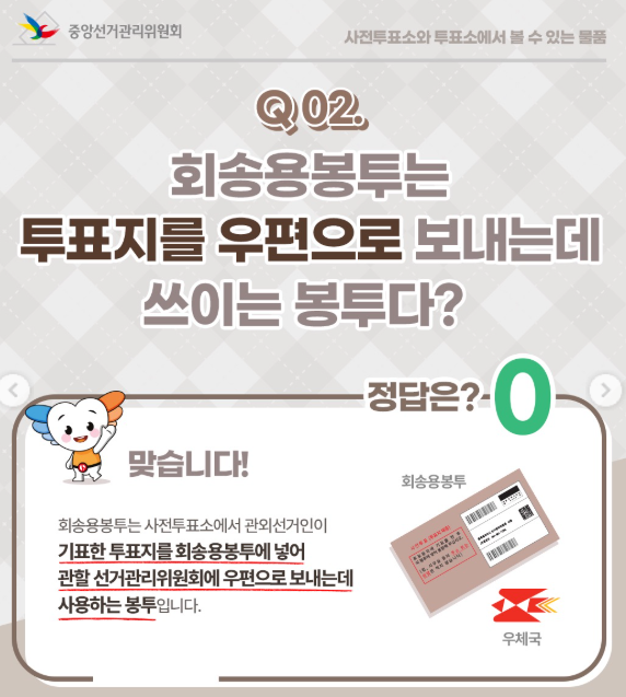 - 관외 유권자: 회송용 봉투와 함께 투표