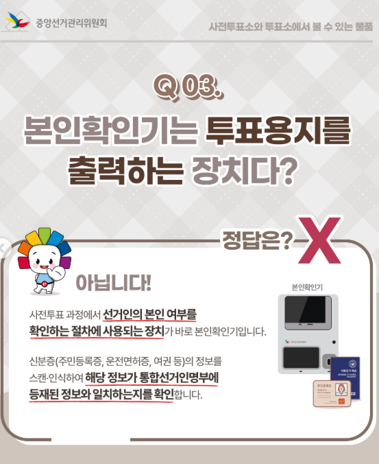 - 투표소에 도착하면 신분증 제시 후 본인 확인을 거칩니다.