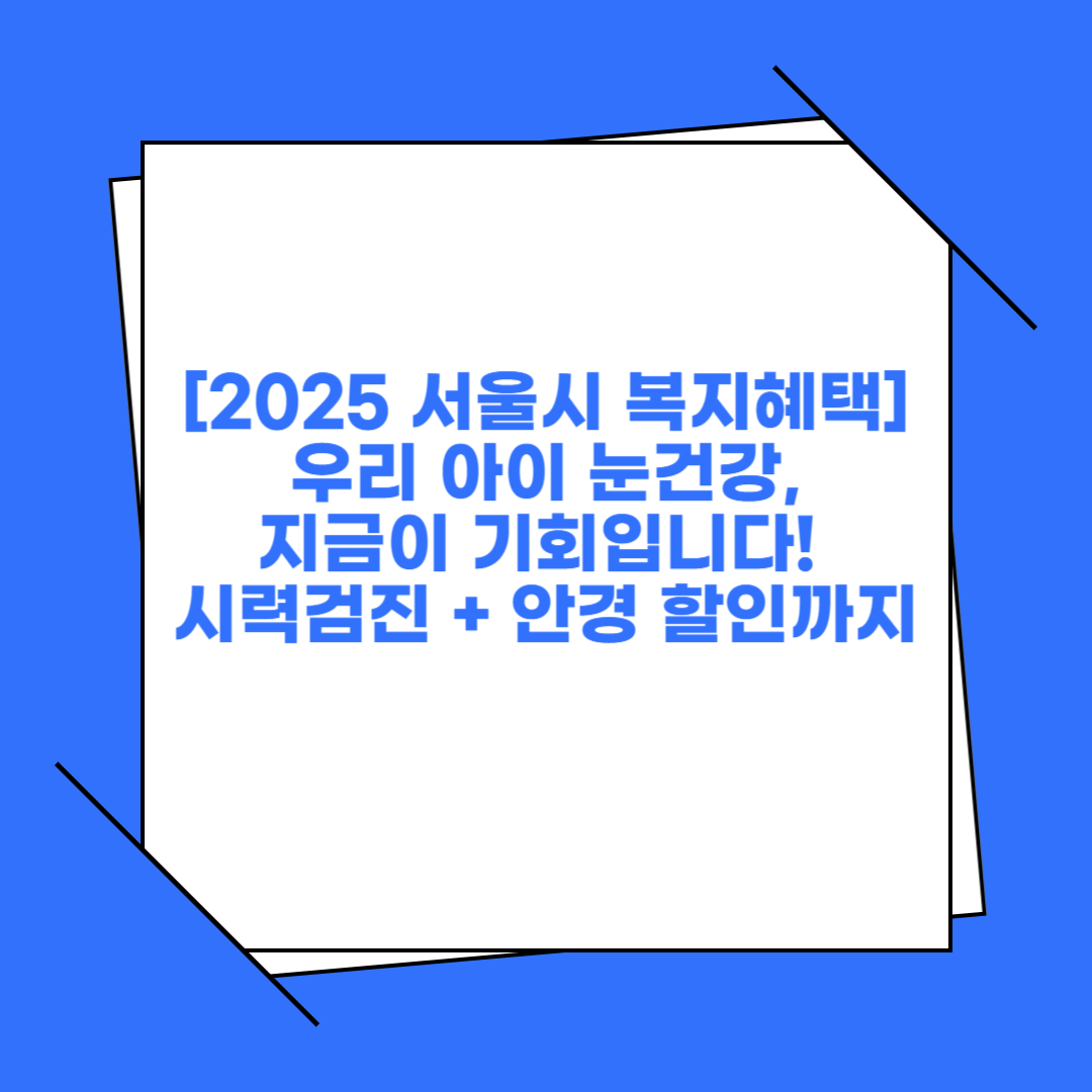 서울시의 이번 혜택은 비용 부담 없이 아이 눈 건강을 챙길 수 있는 절호의 기회입니다.