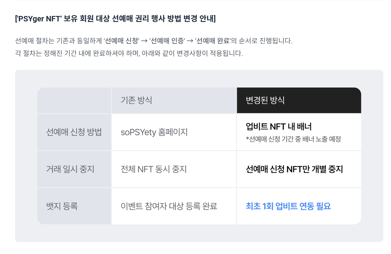 올해도 예외 없이 PSYger NFT 보유자는 일반 예매보다 하루 먼저 티켓을 구매할 수 있습니다.