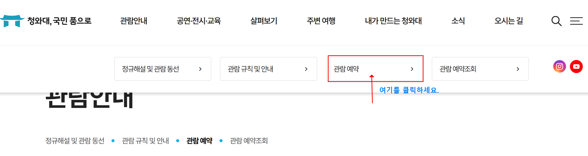 1️⃣ 청와대 관람 누리집 접속 👉 청와대 관람 예약 바로가기