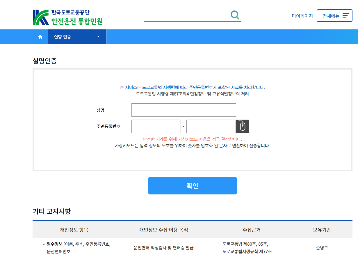 - ☑️ 도로교통공단 홈페이지 접속