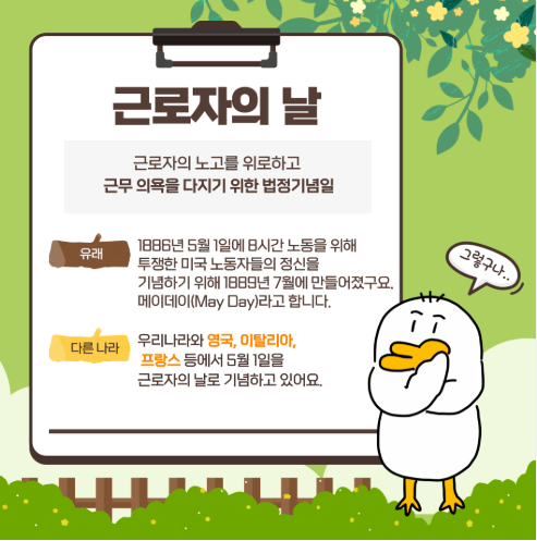 안녕하세요! 따뜻한 봄이 무르익는 5월의 시작, 바로 5월 1일 근로자의 날입니다.