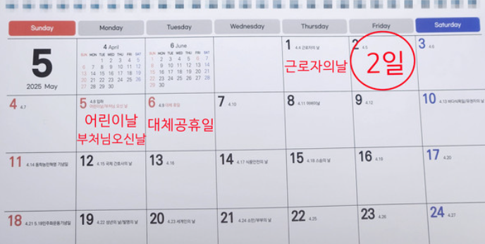 - 2025년 근로자의 날은 목요일