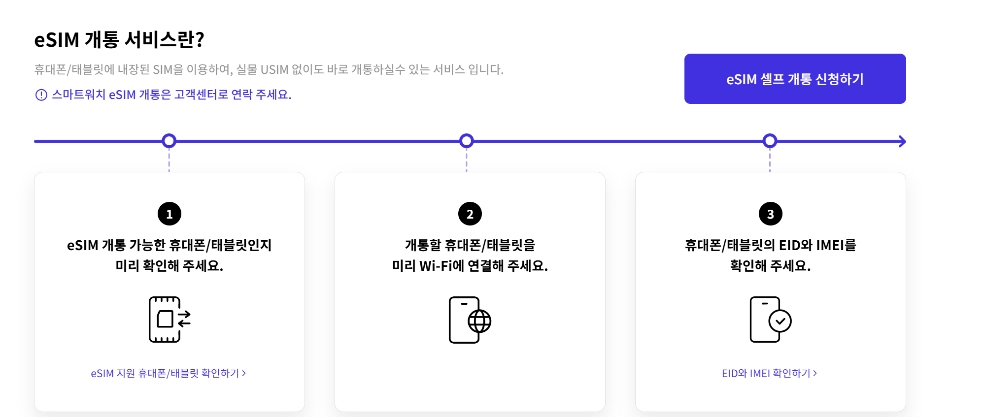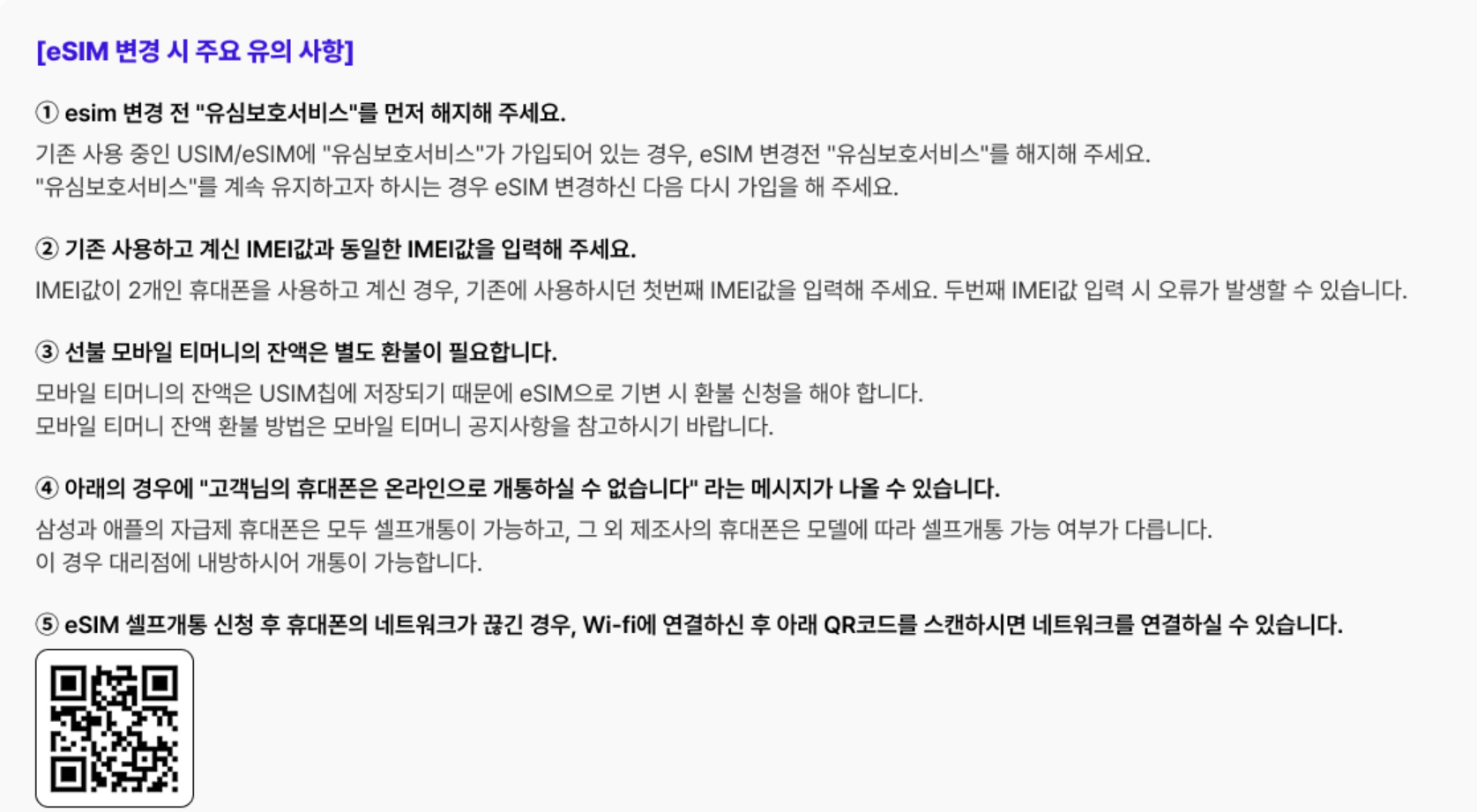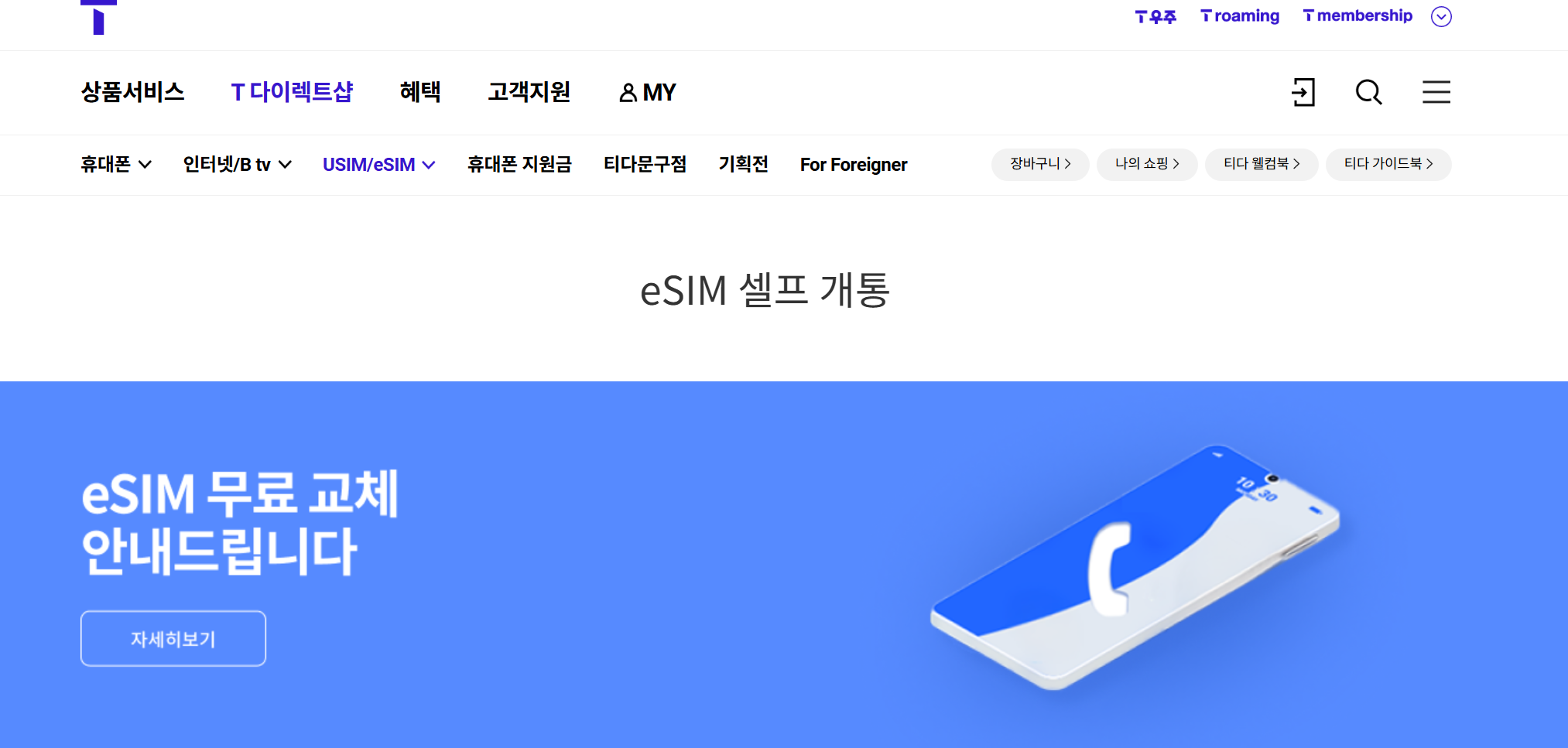 - T다이렉트샵: eSIM 개통 페이지 바로가기